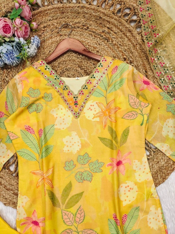Fabric : Premium Maslin Silk with Organza dupatta with Embroidery Work lace and bottom